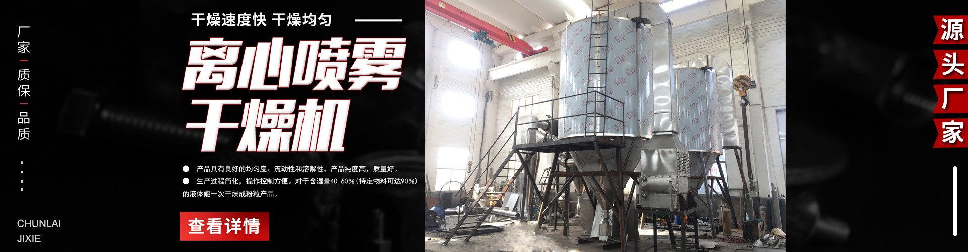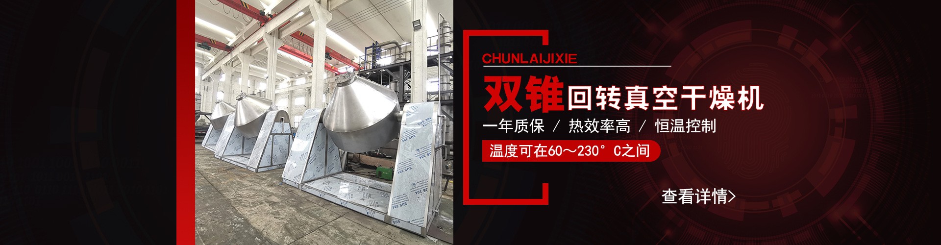 常(chang)州(zhou)市(shi)春(chun)來(lai)製(zhi)藥(yao)機(ji)械(xie)有(you)限(xian)公(gong)司(si)積(ji)累(lei)十(shi)餘(yu)年(nian)製(zhi)藥(yao)機(ji)械(xie)生(sheng)產(chan)經(jing)驗(yan),依(yi)托(tuo)原(yuan)有(you)生(sheng)產(chan)力(li)量(liang),不(bu)斷(duan)引(yin)進(jin)人(ren)才(cai),吸(xi)收(shou)製(zhi)造(zao)技(ji)術(shu),是(shi)一(yi)家(jia)專(zhuan)業(ye)從(cong)事(shi)製(zhi)藥(yao)機(ji)械(xie)和(he)幹(gan)燥(zao)設(she)備(bei)生(sheng)產(chan)的(de)製(zhi)造(zao)企(qi)業(ye)。近(jin)年(nian)來(lai),公(gong)司(si)圍(wei)繞(rao)國(guo)家(jia)產(chan)業(ye)政(zheng)策(ce),不(bu)斷(duan)增(zeng)加(jia)技(ji)改(gai)投(tou)入(ru),自(zi)主(zhu)開(kai)發(fa)多(duo)款(kuan)新(xin)型(xing)節(jie)能(neng)環(huan)保(bao)設(she)備(bei),滿(man)足(zu)不(bu)同(tong)客(ke)戶(hu)需(xu)求(qiu)...