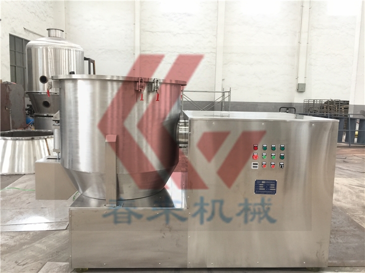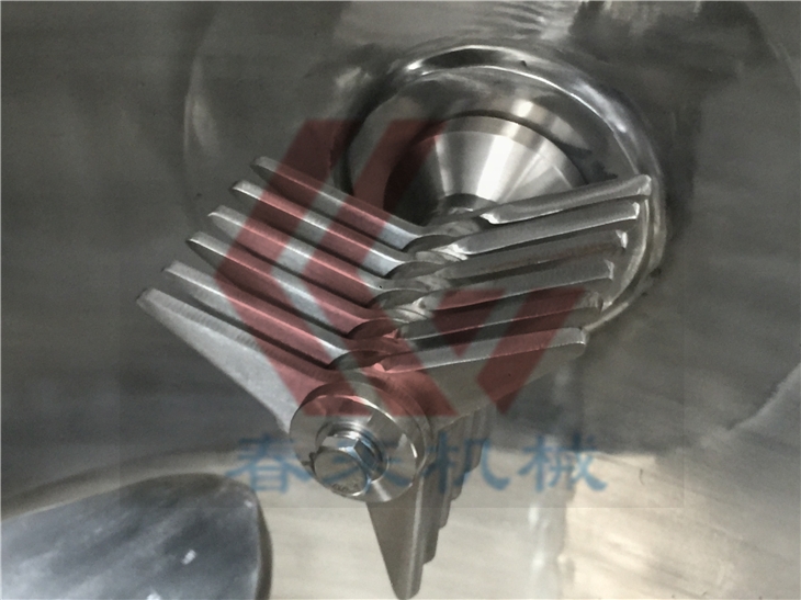 2.利用安裝於機器側壁的高速碎料槳葉,將外圈翻滾起來的物料打碎,同時起到擾動的作用,加大物料間的相對運動,提高混合效果;