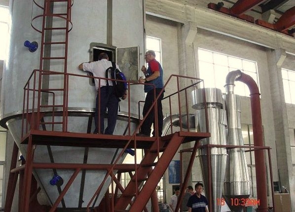 中藥浸膏噴霧幹燥工程:中(zhong)藥(yao)浸(jin)膏(gao)高(gao)速(su)離(li)心(xin)式(shi)噴(pen)霧(wu)裝(zhuang)置(zhi)是(shi)離(li)心(xin)式(shi)噴(pen)霧(wu)幹(gan)燥(zao)技(ji)術(shu)在(zai)特(te)定(ding)物(wu)料(liao)幹(gan)燥(zao)中(zhong)的(de)應(ying)用(yong),也(ye)是(shi)利(li)用(yong)高(gao)速(su)離(li)心(xin)式(shi)霧(wu)化(hua)器(qi)使(shi)物(wu)料(liao)分(fen)散(san)成(cheng)細(xi),與(yu)熱(re)空(kong)氣(qi)充(chong)分(fen)接(jie)觸(chu),完(wan)成(cheng)瞬(shun)間(jian)幹(gan)燥(zao),形(xing)成(cheng)粉(fen)狀(zhuang)成(cheng)品(pin)的(de)幹(gan)燥(zao)裝(zhuang)置(zhi)。該(gai)幹(gan)燥(zao)設(she)備(bei)是(shi)專(zhuan)門(men)用(yong)來(lai)解(jie)決(jue)中(zhong)藥(yao)浸(jin)膏(gao)和(he)植(zhi)物(wu)提(ti)取(qu)液(ye)的(de)噴(pen)霧(wu)幹(gan)燥(zao)機(ji),它(ta)有(you)效(xiao)地(di)解(jie)決(jue)了(le)原(yuan)LPG高速噴霧幹燥機在中藥浸膏幹燥中出現的諸多問題。